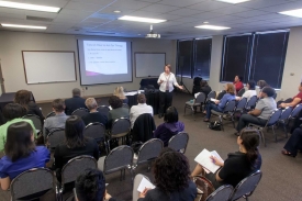 Speaker and Panel at a Meeting at Norris Centers Houston, CityCentre